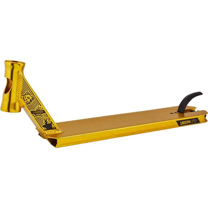 To właśnie decki są bez wątpienia najbardziej podstawową częścią każdej hulajnogi wyczynowej. Na rynku dostępnych jest wiele rodzajów decków do hulajnóg freestyle – w najróżniejszych długościach i szerokościach. Także to od preferowanego przez Ciebie stylu jazdy zależy, jaki podest do hulajnogi wyczynowej powinieneś wybrać. Różnią się od siebie nie tylko wymiarami, ale także rodzajem hamulca; do niektórych decków hamulec wchodzi w skład zestawu (np. kultowy podest Blunt AOS V5 Jon Reyes Signature posiada hamulec flex fender wykonany ze stali i pokryty nylonem). Nigdy nie spiesz się z wyborem podestu. Przemyśl nie tylko stylizację hulajnogi, którą planujesz ulepszyć, ale także osiągi, które chcesz uzyskać. Pamiętaj, że nasza infolinia zawsze pozostaje do Twojej dyspozycji – również wtedy, gdy nie wiesz, jaki podest do hulajnogi wybrać dla siebie lub prawdziwemu pasjonatowi, na prezent.