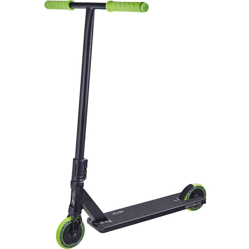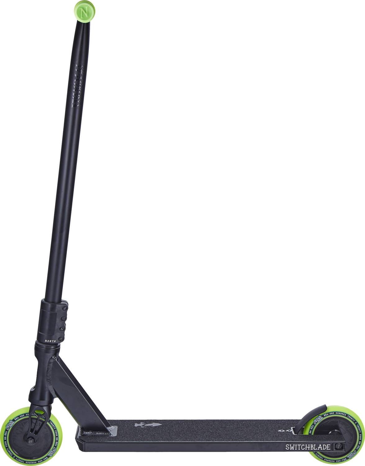 Oto kompletna hulajnoga wyczynowa firmy North plasująca się o szczebelek wyżej od Hatchet: model Switchblade. Znajdziesz w niej duże kółka o średnicy 120 mm, wytrzymałą kierownicę w kształcie litery T, system kompresji SCS oraz zakończenia typu boxed z wymienialnymi insertami. Trudno będzie znaleźć lepszy model w tej kategorii cenowej.