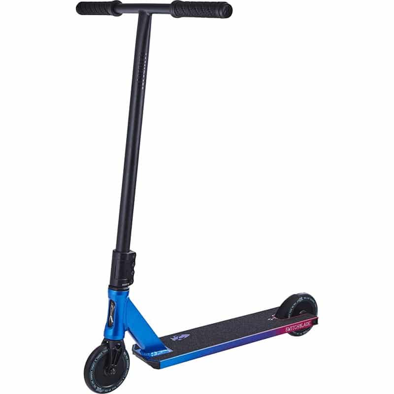 Oto kompletna hulajnoga wyczynowa firmy North plasująca się o szczebelek wyżej od Hatchet: model Switchblade. Znajdziesz w niej duże kółka o średnicy 120 mm, wytrzymałą kierownicę w kształcie litery T, system kompresji SCS oraz zakończenia typu boxed z wymienialnymi insertami. Trudno będzie znaleźć lepszy model w tej kategorii cenowej.