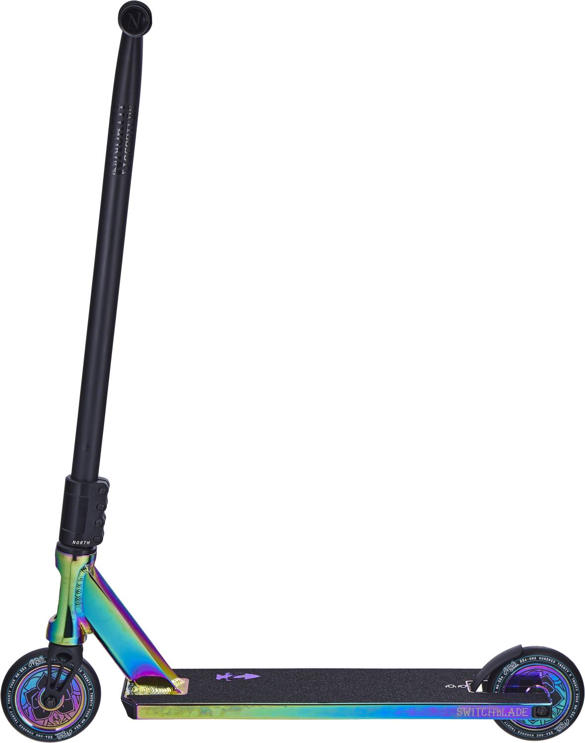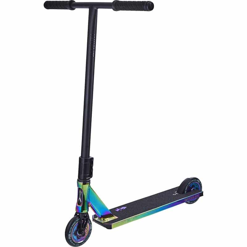 Oto kompletna hulajnoga wyczynowa firmy North plasująca się o szczebelek wyżej od Hatchet: model Switchblade. Znajdziesz w niej duże kółka o średnicy 120 mm, wytrzymałą kierownicę w kształcie litery T, system kompresji SCS oraz zakończenia typu boxed z wymienialnymi insertami. Trudno będzie znaleźć lepszy model w tej kategorii cenowej.