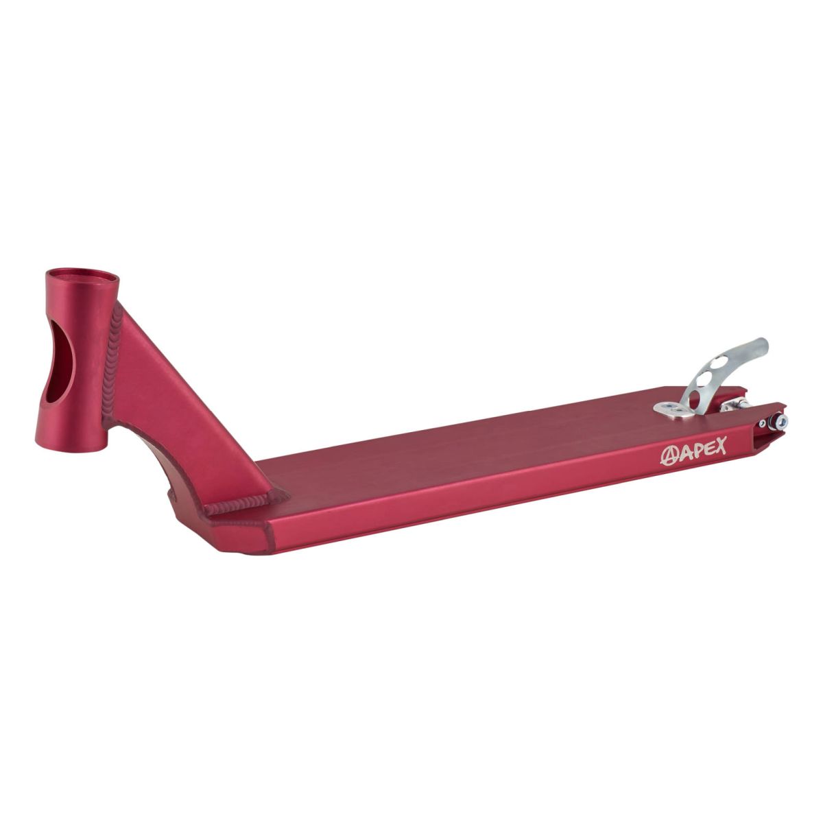 Najwyższej jakości deck od Apex Scooters z Australii. Zrobiony ze specjalistycznego australijskiego aluminium T6/6082, wycinanego metodą CNC, z nadrukiem laserowym. W skrócie – jest to materiał i produkt najwyższej jakości, zrobiony przy pomocy najdokładniejszej techniki i maszyn. Deck idealny do grindowania, posiada wygładzone boki, co chroni Twoje dłonie podczas robienia trików. Ulepszony design komina daje więcej miejsca na stopy.