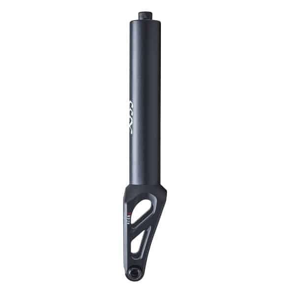 Wyprodukowany maszynowo CNC z pojedynczego bloku aluminium, można zamontować kółka do 130 mm średnicy. Widelec do hulajnogi wyczynowej, z pewnością świetnie będzie się prezentował z deckiem Advent, również od firmy Native.