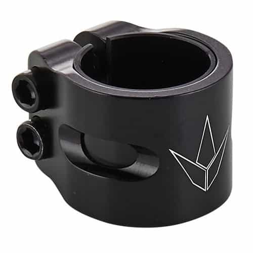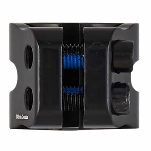 Solidny dwuśrubowy zacisk marki Blunt. Zacisk ma w zestawie SHIM (pierścień), dzięki któremu pasuje pod kierownice Standard.